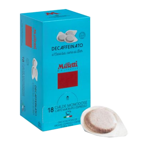 18 cialde Caffe Decaffeinato, caffe decaffeinato torrefatto, macinato e confezionato in atmosfera protettiva con contenuto di caffeina massimo pari allo 0,1 percento