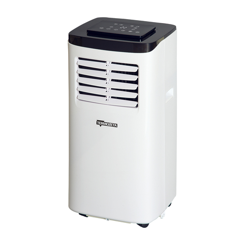 Condizionatore portatile monoblocco con 9000 BTU/h di raffreddamento e funzione deumidificante.
