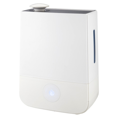 Umidificatore ultrasonico con capacità di umidificazione di 330 ml/h e tanica d'acqua da 4 L. Design elegante in grigio e bianco, controllo touch, 3 velocità e filtro estraibile. Silenzioso (35 dB) e sicuro grazie allo spegnimento automatico.