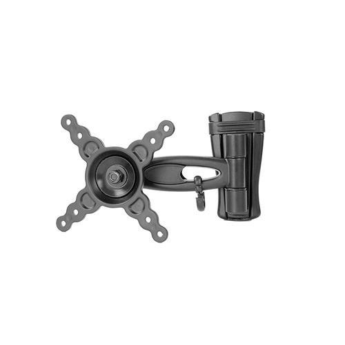 Supporto da parete per monitor, colore nero, con capacità di carico fino a 20 kg. Supporta schermi da 10" a 30", inclinazione da -15° a 15° e rotazione di 320°.