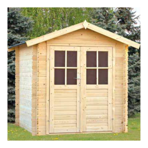 Casetta Merlin in abete grezzo non trattato, superfice interna 2.57 mq, porta doppia 120x170h, dimensioni esterne 198x168 cm, altezza max 225 mm.