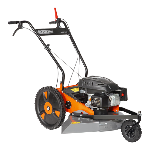 Trinciaerba a scoppio, cilindrata 173 cm³ (4,3 HP), larghezza taglio 51 cm, altezza taglio regolabile da 55 a 110 mm, ruota frontale diam.200, ruote laterali 420 mm.