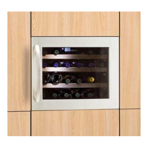 Cantina vino a incasso monotemperatura +5°/+18°C, porta in doppio vetro con modanatura in acciaio inox, illuminazione con luci LED, 3 ripiani di stoccaggio, capienza complessiva di 22 bottiglie