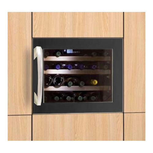 Cantina vino a incasso monotemperatura +5°/+18°C, porta tutto vetro, illuminazione con luci LED, 3 ripiani di stoccaggio, capienza complessiva di 22 bottiglie.