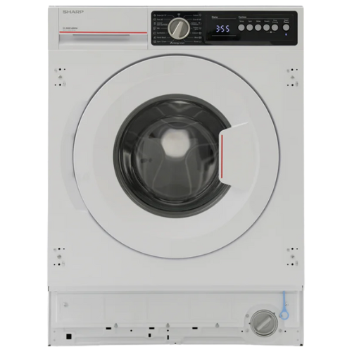 Lavatrice Sharp ES-NIB814BWNA, da incasso, colore bianco, Tecnologia Vapore, caricamento frontale, capacità di carico 8 Kg, velocità massima centrifuga 1400 RPM, motore inverter.