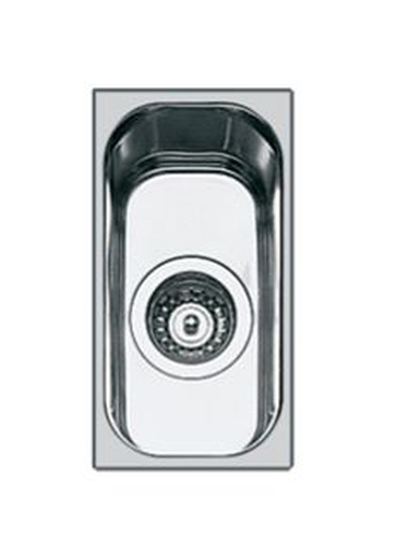Lavello montato su piano in acciaio inox con vasca singola. Dimensioni: 150 x 300 mm e profondità di 15 cm. Design elegante e funzionale, ideale per spazi ridotti.