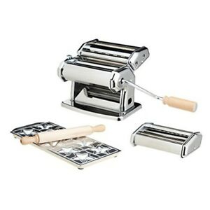 Macchina per la pasta manuale in acciaio inox, proveniente dall'Italia. Design elegante e prestazioni elevate per una pasta fresca fatta in casa.
