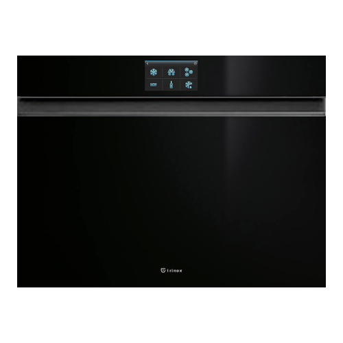 Abbattitore rapido di temperatura da incasso, vetro nero, maniglia anodizzata acciaio, interfaccia digitale soft-touch, 9 funzioni congelamento e cottura a bassa temperatura, potenza max 500W, 2 griglie inox, gas refrigerante R290.