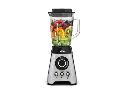 Frullatore da tavolo in acciaio inox con potenza di 1000 W. Include 6 lame, funzione PULSE e capacità di 1,5 L. Facile da pulire e smontare, con accessori lavabili in lavastoviglie.