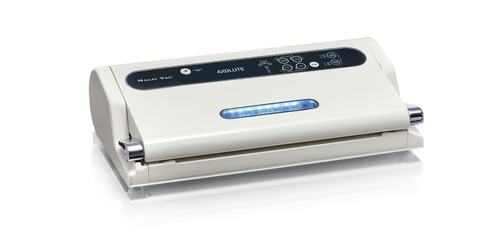 Sigillatore per vuoto con 800 mbar di vuoto, disponibile in Argento e Bianco. Potenza di 220 W, dimensioni compatte e rotolo sigillante incluso.