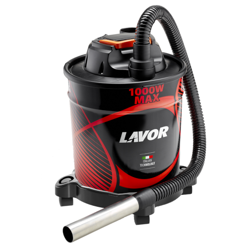 Aspira cenere con motore silenziato, doppio isolamento elettrico, fusto in acciaio verniciato, filtro a cartuccia HEPA lavabile, prefiltro per polveri fini , carrello con ruote, Tubo flex in metallo rivestito + lancia, potenza 800W (1000W max),