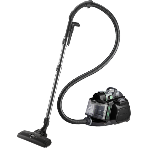 Aspirapolvere senza sacchetto in nero con due velocità.