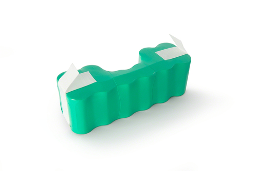 Batteria di ricambio per Roomba 980, 48 Wh, ioni di litio, design nero e verde. Dimensioni: 140 mm x 44 mm.