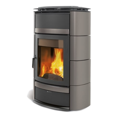 Termo stufa a legna NORMA S IDRO DSA Grigio Agata, rivestimento in maiolica e testata in ghisa, sistema di post-combustione, vetro ceramico curvo, dispositivo di sicurezza DSA, potenza termica nominale 19,5 kW, volume riscaldabile 559 mc.
