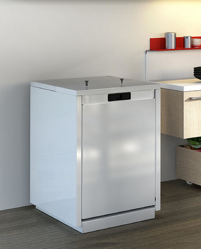 Apparecchio a pellet con libera installazione, colore bianco e scocca in metallo. Efficienza del 92,8% per stanze fino a 437 m³. Capacità tramoggia di 30 kg e serbatoio di 16,5 L. Facile da pulire e utilizzare.