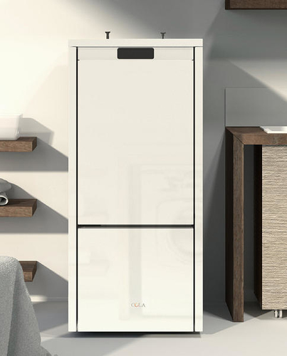 Stufa a pellet Hydro HRV 200 Ceramic Bianco, ermetica, top e fianchi in ceramica, classe ambientale 5 stelle, potenza termica nominale 21,9 kW, braciere autopulente, ventilatore frontale, palmare touch, volume riscaldabile 565 mc, classe energetica A++.